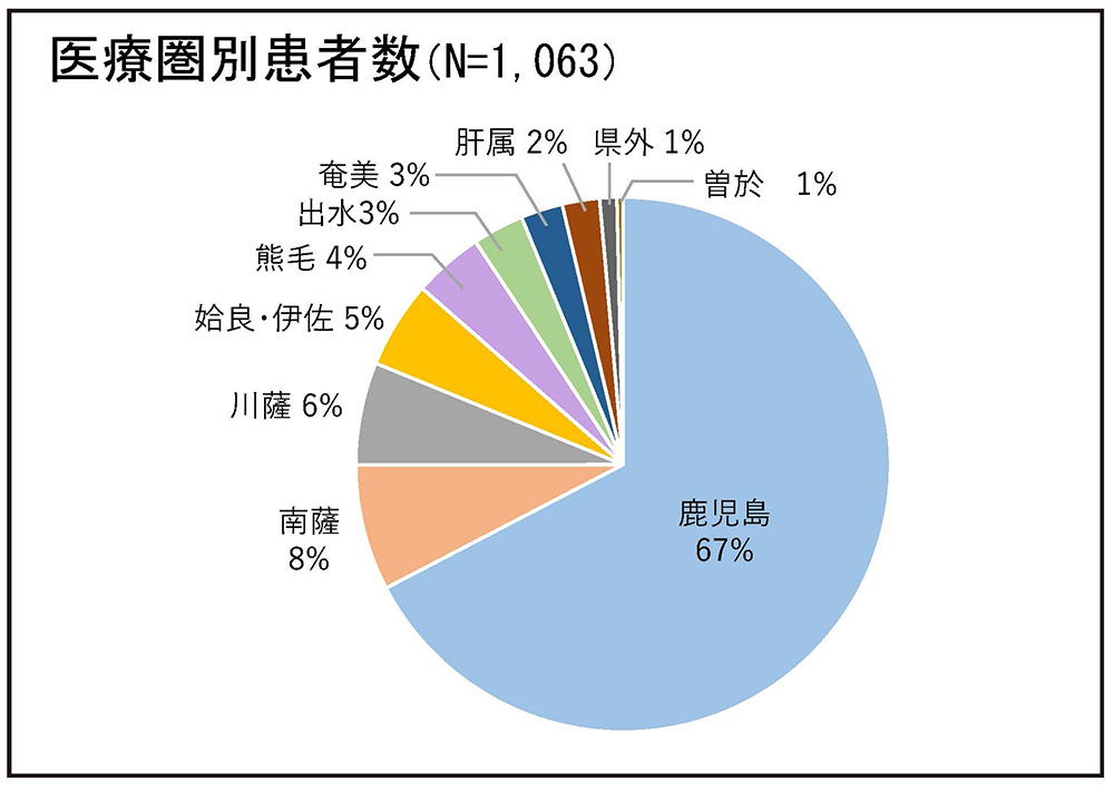 約7割が鹿児島医療圏、次に南薩医療圏、川薩医療圏、熊毛や奄美など離島からの患者は約7%です。県内全域から来院されています。