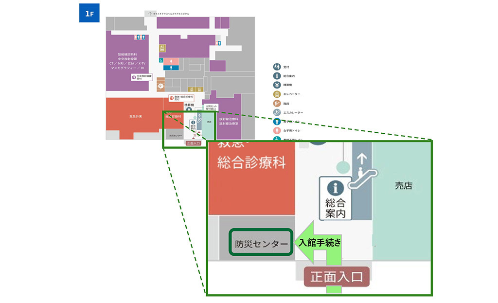 面会当日は、1階防災センターにて入館手続きを行ってください