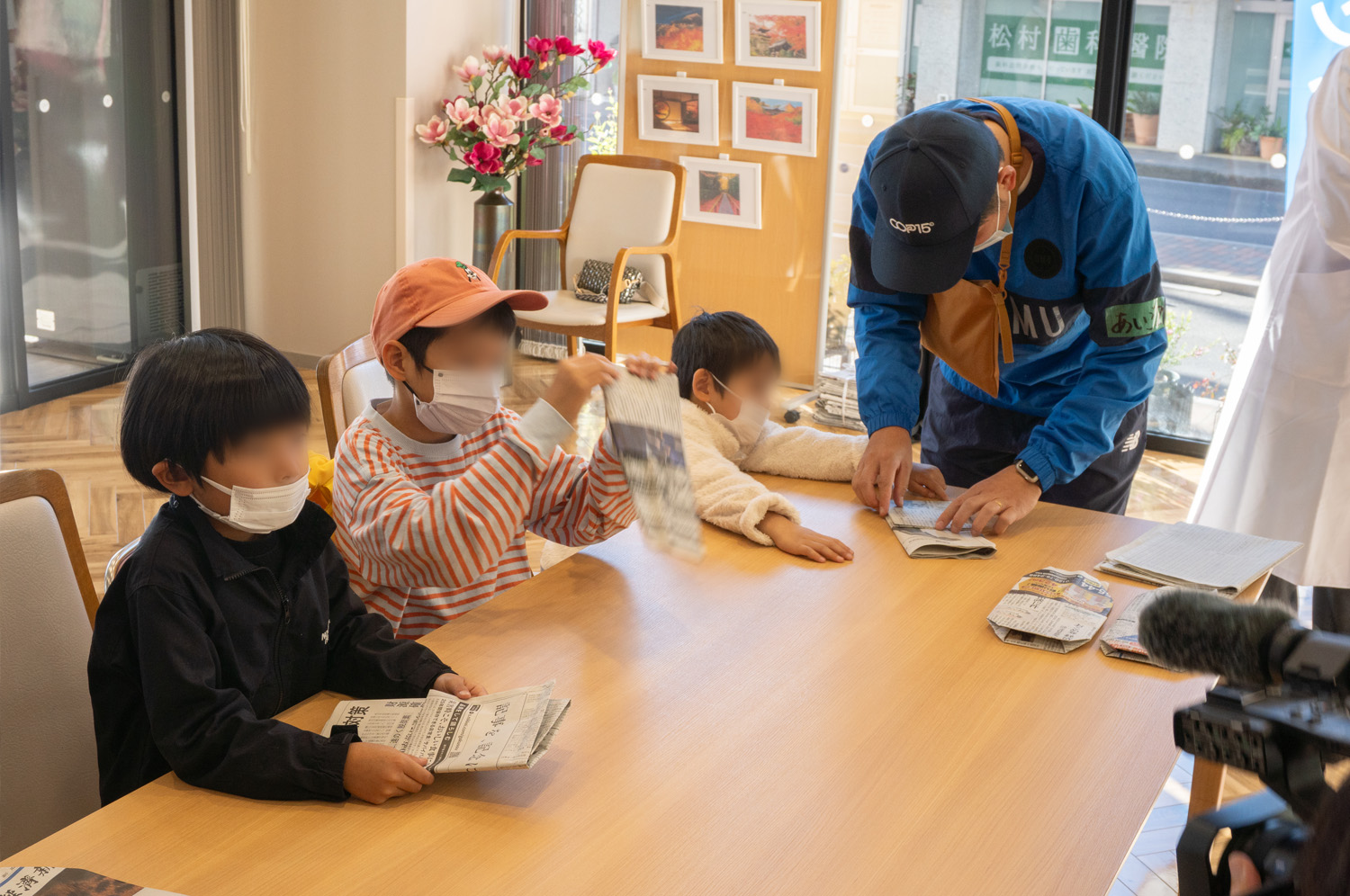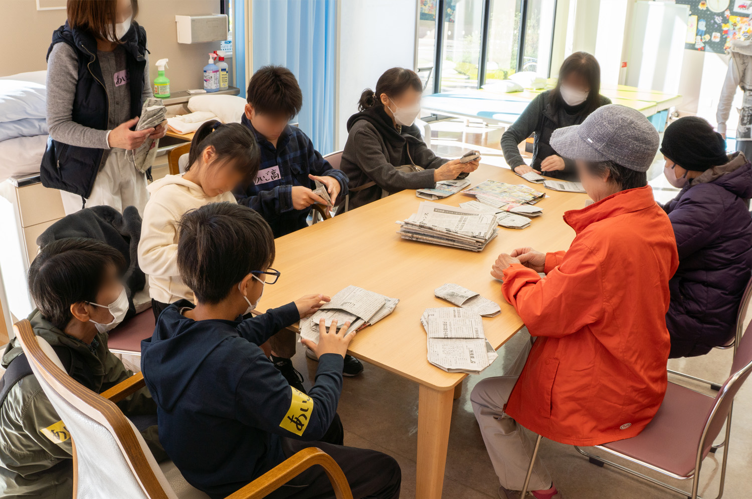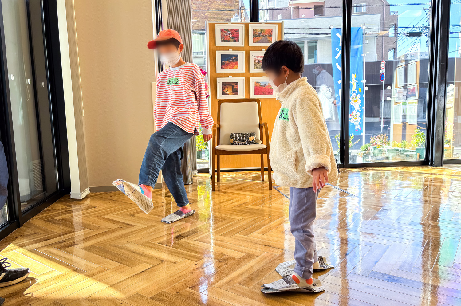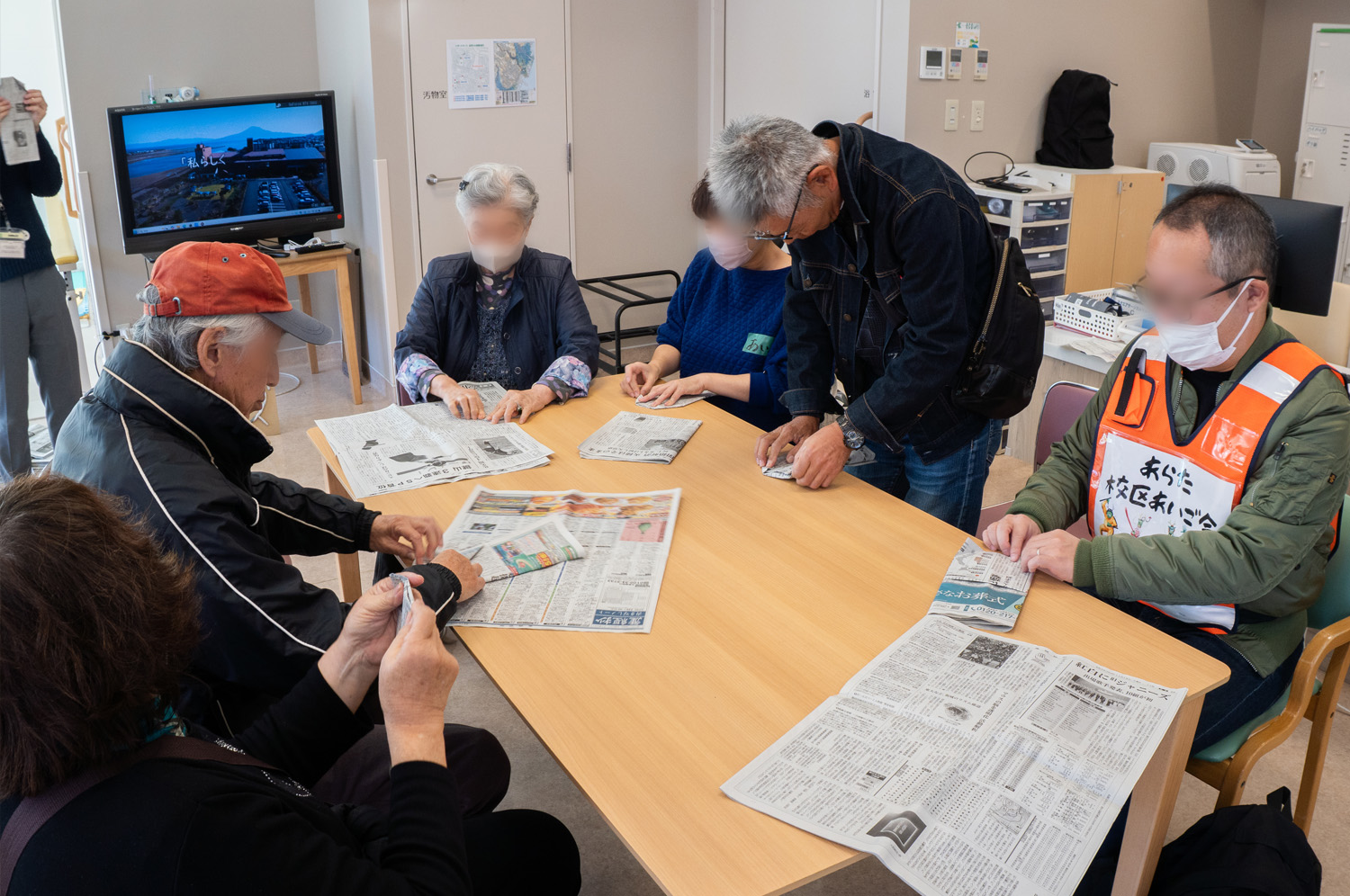 当日はキラメキテラス街区合同防災訓練も行われ、荒田校区の方々もトリアージ訓練に参加しました。また、防災訓練の他に、鹿児島市危機管理課 職員による新聞紙で作る防災スリッパの体験や、桜島大正噴火に関するパネル展示、鹿児島市消防局中央消防署による消火器訓練・消防車展示を実施しました。