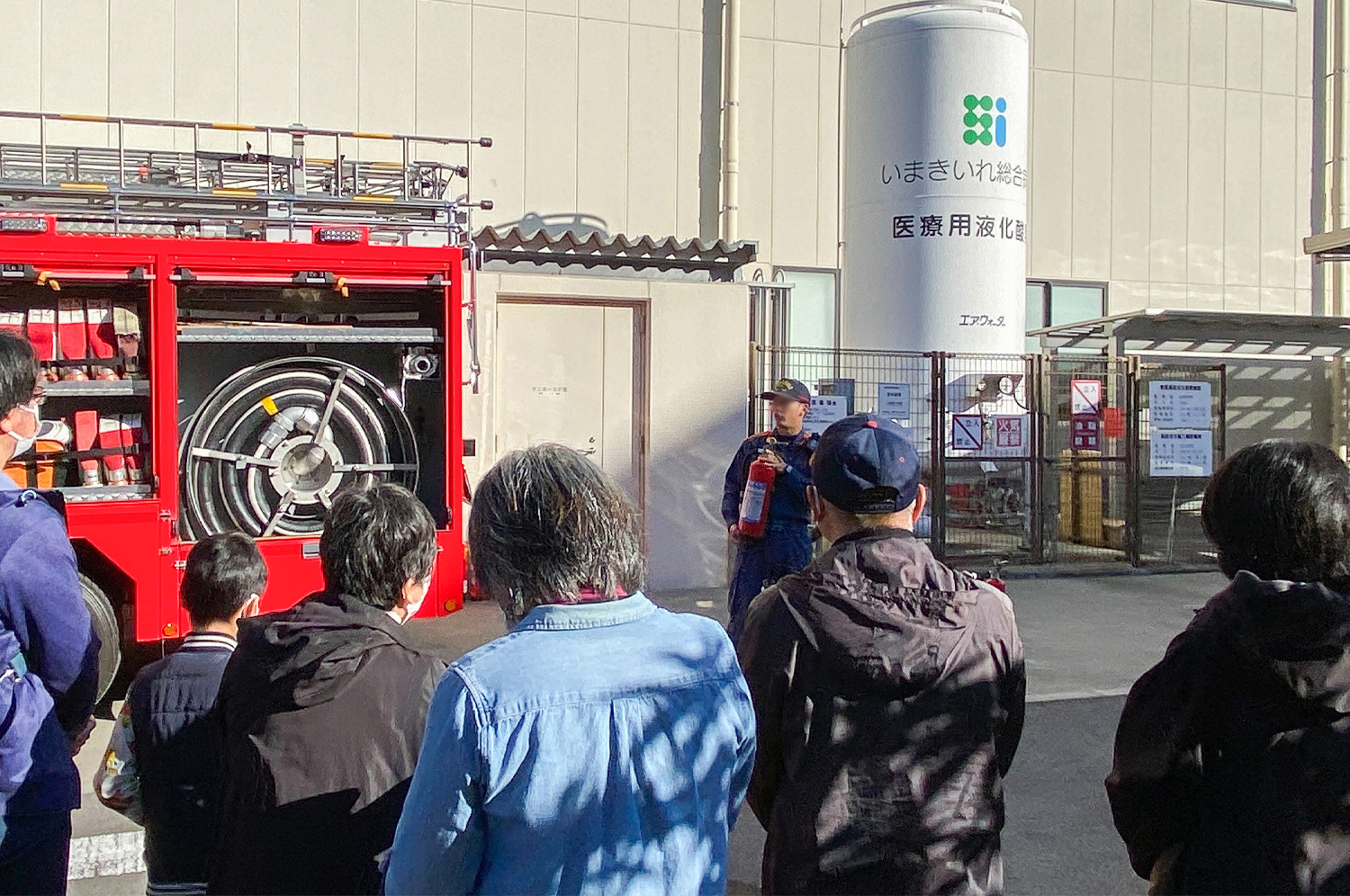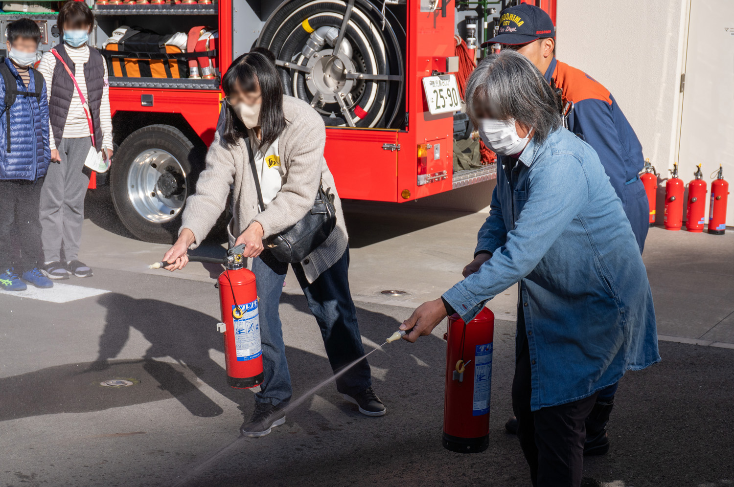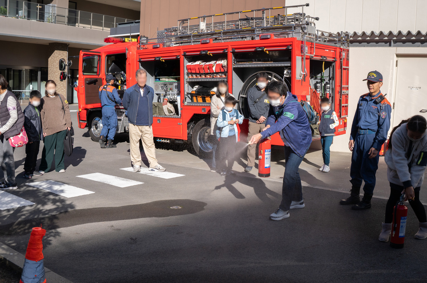 鹿児島市消防局中央消防署の協力による消火器訓練・消防車展示