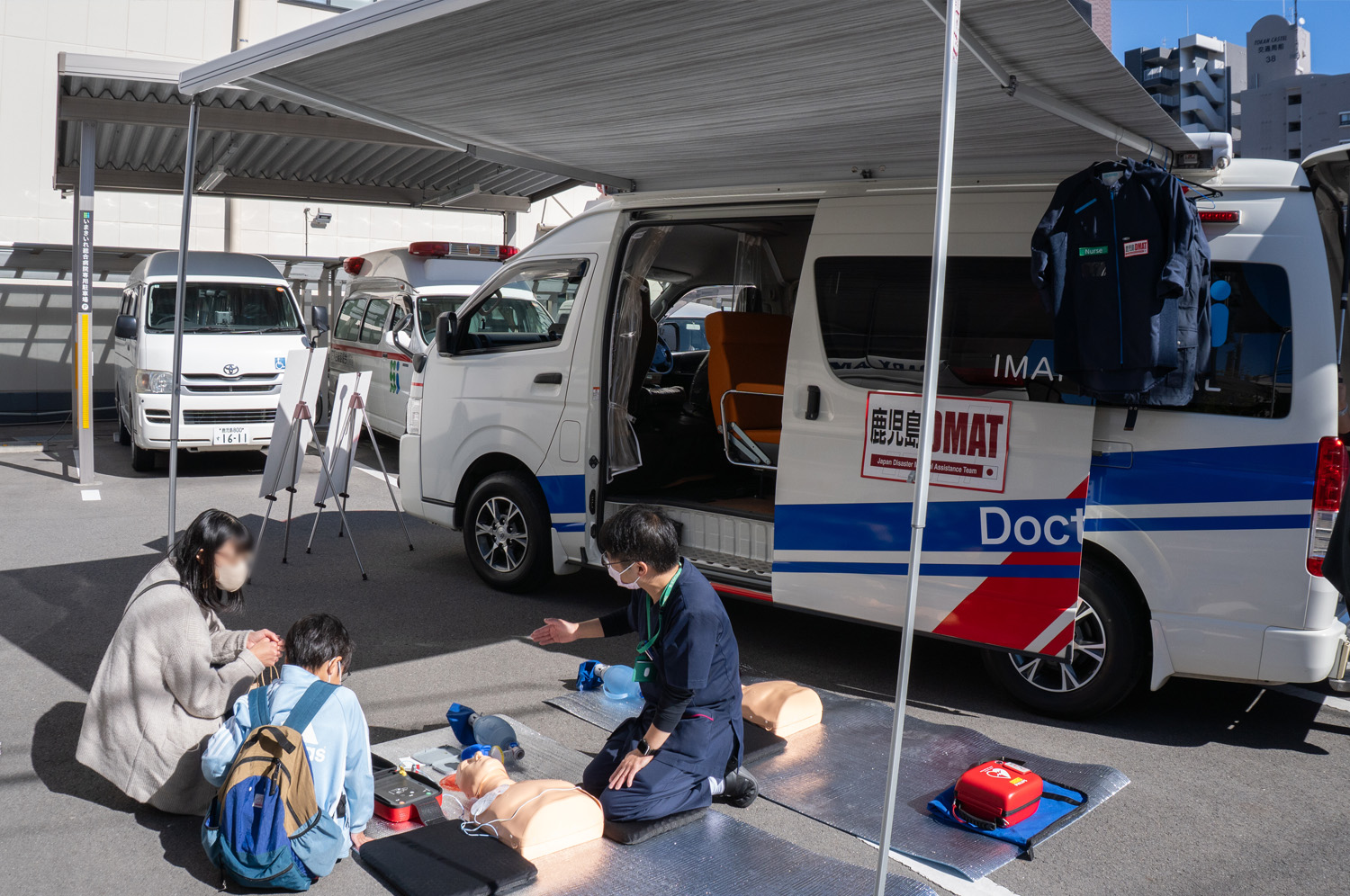 さらに鹿児島大学共通教育センター准教授の井村氏による防災講話、炊き出し訓練、ドクターカー展示も行われ、大人から子どもまで70名を超える地域の方々が興味を持って参加されました。